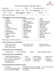 Health Questionnaire Form Medicare Patients Only